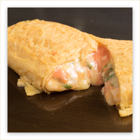 長年使い込んだ2cmもの厚みがある鉄板が、当店のお料理には欠かせません。厚みがあるためしっかりと熱を保ち、絶妙な火加減で食材に一気に熱を通すことが出来ます。これが素材本来の旨味を逃さずに、美味しく仕上げるポイントなのです。
